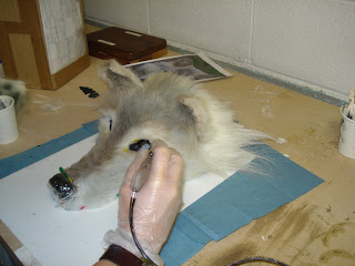 I put the eyes in place and sealed them in with the tinsil gel 10. I then punched the whiskers.